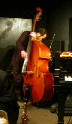 ん?この曲は・・・「ゴッドファーザーのテーマ」?テンポがちょっと速い気がする。音川さん少し吹きづらそう、マウスピースを少し合わせ直す。いきなりサックスドラムデュオ。ま、何しろいつもとパターンを変えようという努力はいいことだ。ノブ君背中を丸めてデュオに聞き入っている。音川森山の勝負ですね、なかなかしぶとい音川さん、なかなか根を上げ